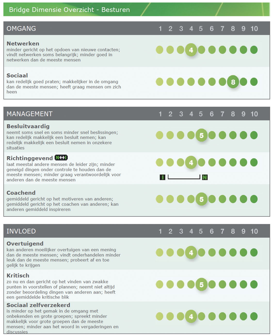 The Bridge Personality is de meest gebruikte Big Five persoonlijkheidstest voor het verkrijgen van inzicht in de Big Five persoonlijkheid van werknemers of sollicitanten. Een deelnemer is ongeveer 45 minuten met de test bezig. Na afloop is direct een Big Five persoonlijkheidsrapport beschikbaar met daarin de score op de 34 Big Five competenties.