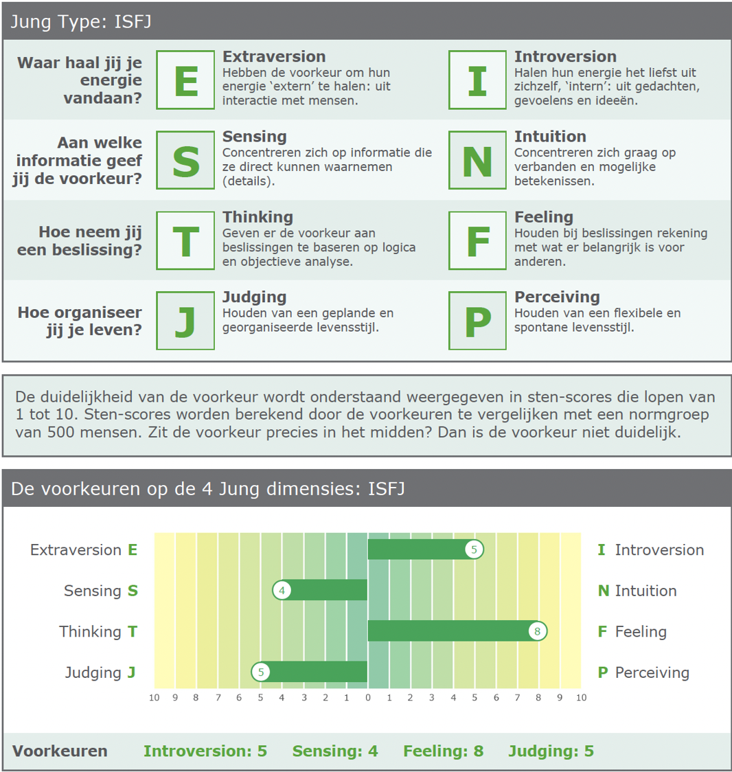 Voorbeeld van het Big Five + 16 Jung Type rapport