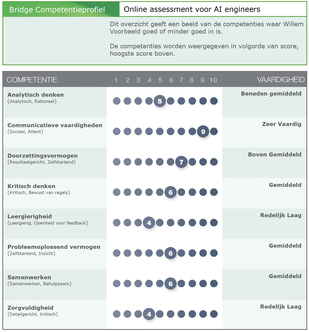 Voorbeeldrapport van het assessment voor AI engineers