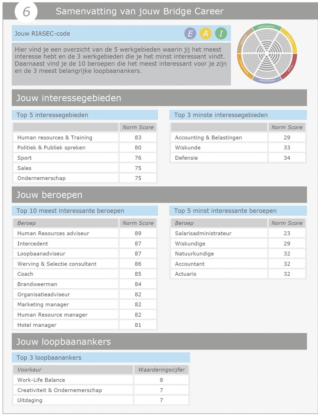 Voorbeeldpagina uit een loopbaan assessment rapport